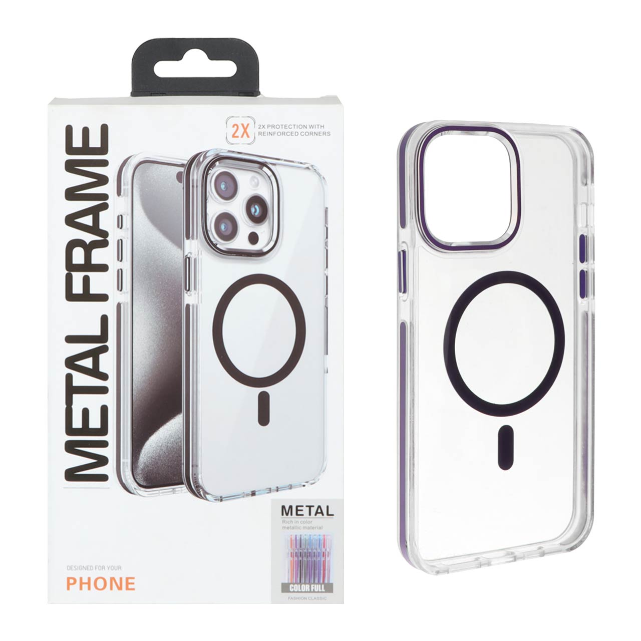 قاب اورجینال Metal Frame پشت سخت شفاف Magsafe مدل Apple iPhone 13 Pro Max - بنفش (پک دار)